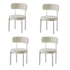 Transform your dining space with the LivinVeluris Boucle Dining Chairs, seamlessly merging modern style and comfort. Crafted from robust iron and featuring boucle fabric, these chairs boast a chic metal frame and a comfortably curved design. The contemporary round appearance adds sophistication to any living space, while the boucle upholstery complements the metal legs, creating an elegant contrast. Note: Fabric type may cause the color to appear lighter.
