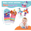 - 🎀 4-Piece Baby Rattle Set for Sensory Development – Includes 2 soft hand/wrist rattles and 2 foot rattle socks. Designed to stimulate spatial awareness, visual tracking, and sound recognition in newborns 0-6 months. The gentle rattles encourage early learning while keeping tiny hands and feet engaged!
